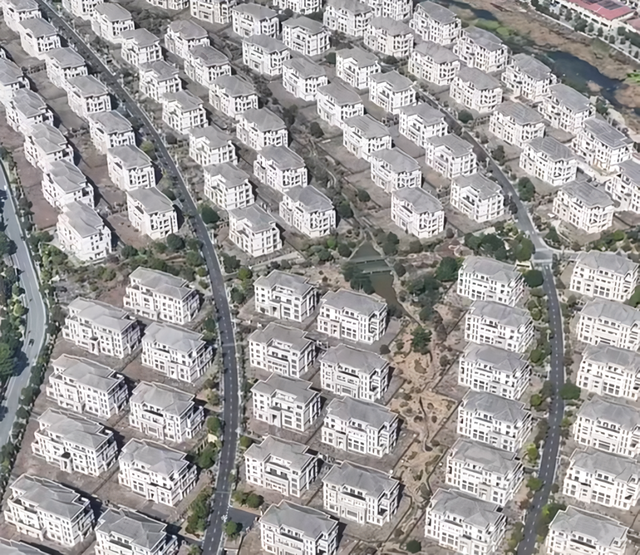 随着销售遇冷,部分项目因资金问题被迫停工,有些业主甚至未能如期收房。尽管后来开发商增设了学校、酒店等设施,试图扭转颓势,但收效甚微。如今,这片曾经热闹的开发区,只剩下成排的空屋与日渐荒芜的景观,与不远处已入住的住宅区形成了鲜明对比。