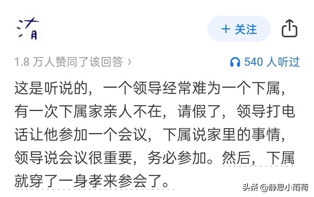 更有甚者,有网友爆料称,某单位员工因不批丧假,竟直接披麻戴孝上班,这一举动让整个部门都炸了锅。领导面对此情此景,也是敢怒不敢言,生怕事情闹大影响自己的政治生涯。