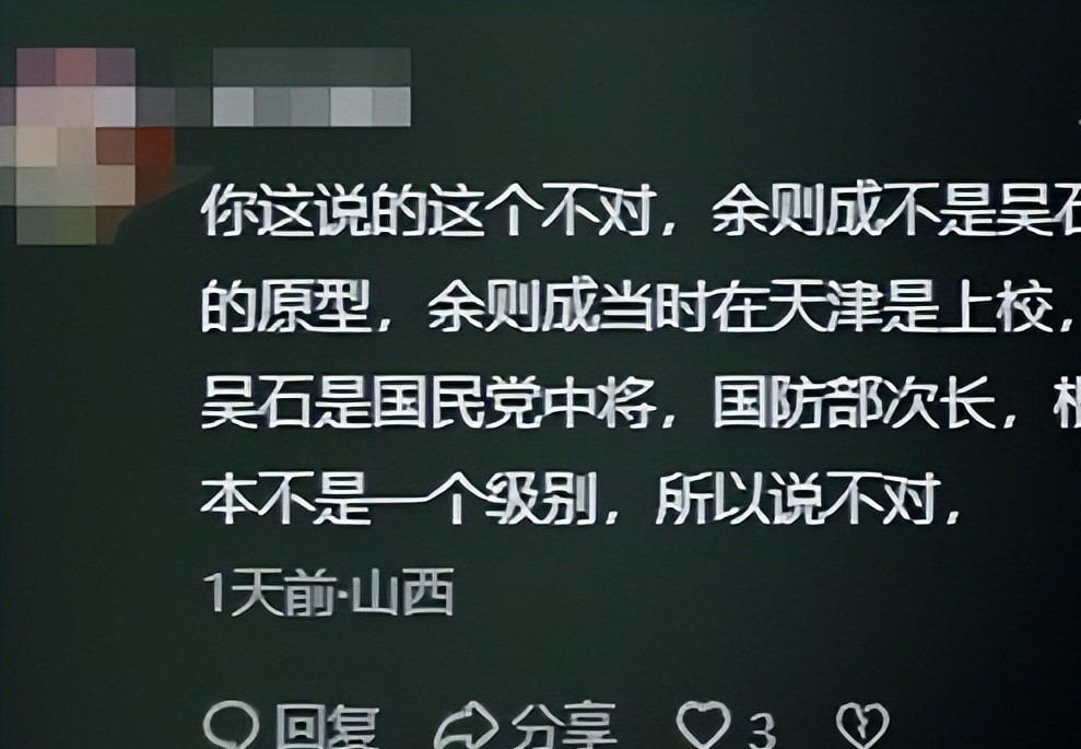 虽然有网友对余则成的原型提出质疑,认为其职位与吴石相差甚远。但事实上,余则成这个角色确实是以吴石为原型之一创作的,同时还融入了其他中共地下党员的原型。