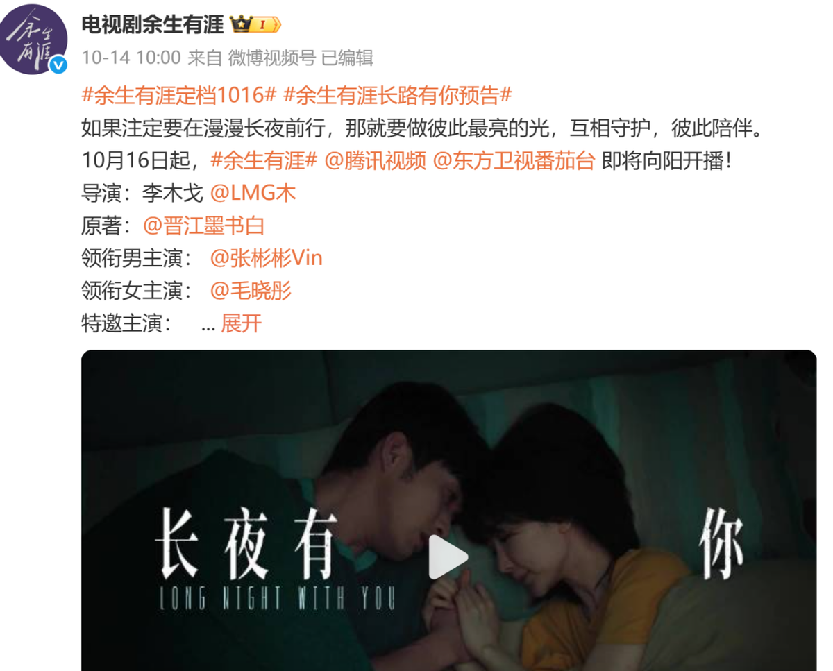 《余生有涯》由《司藤》《东宫》导演李木戈执导,《花千骨》编剧操刀剧本,这样的强强联合让该剧未播先火。从预告片来看,这部剧有望成为继《许我耀眼》后的又一部都市剧爆款。