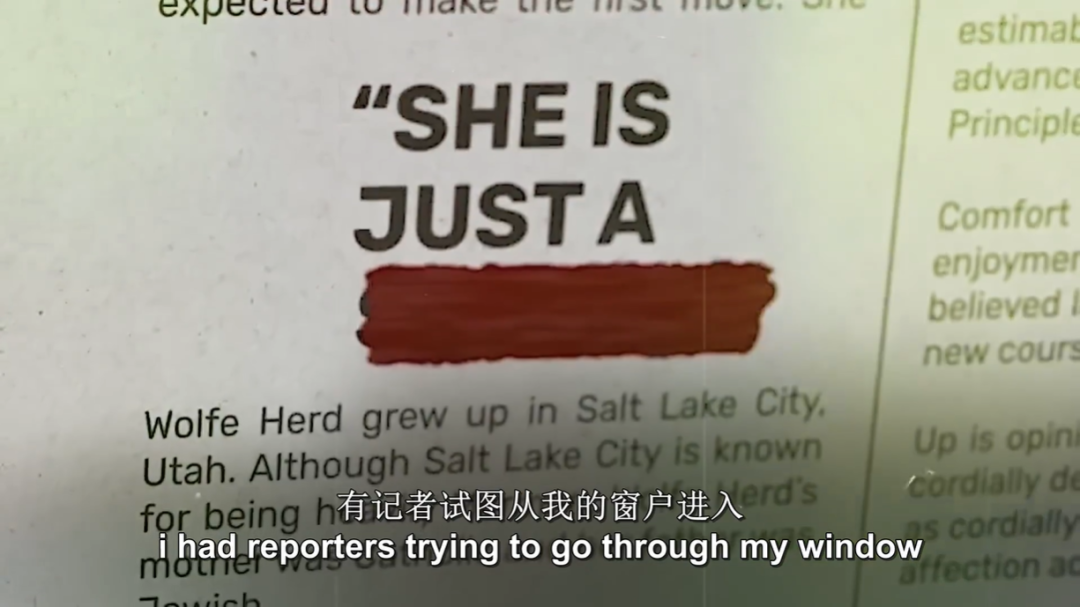 她为此曾不断收到死亡与性威胁,还有记者试图翻窗进入她家中想一探究竟。