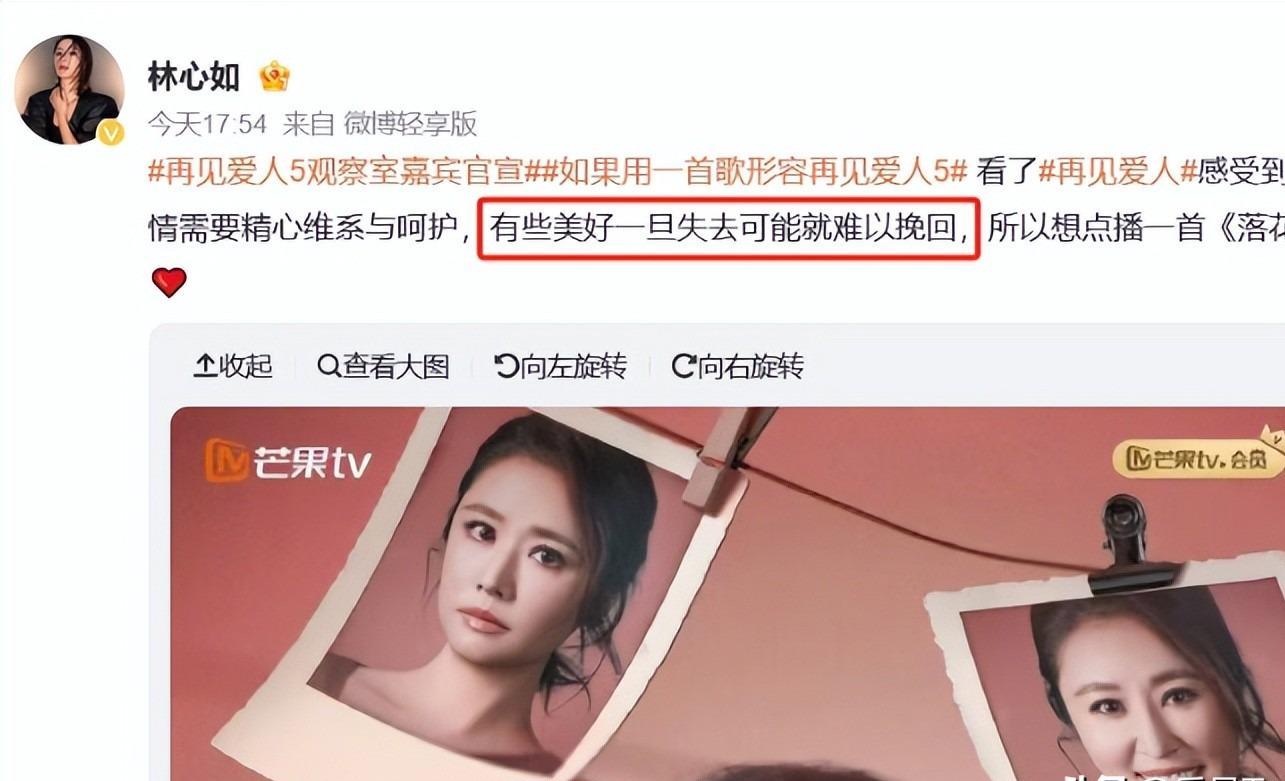 49岁林心如官宣离婚综艺,一句“难以挽回”,直接让全网炸锅!