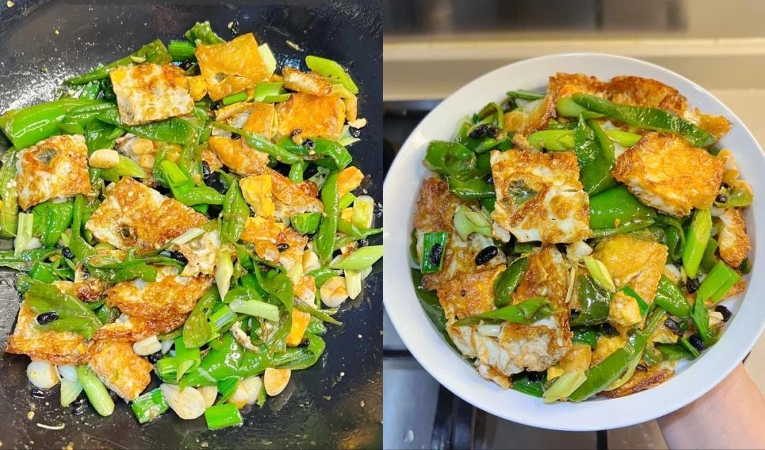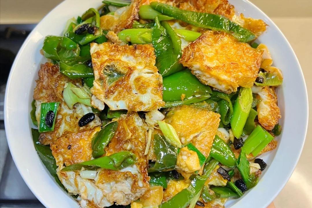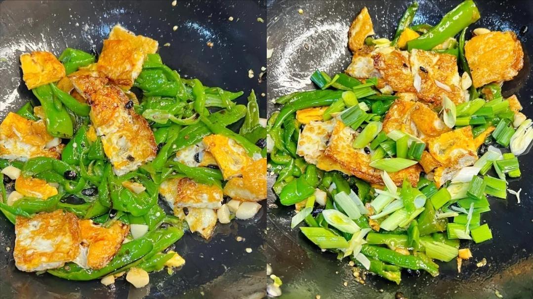 你看看这盘擂辣椒鸡蛋,青椒的香辣、鸡蛋的嫩滑、豆豉的香味和蒜苗的清香完美地融合在一起,颜色也特别好看,让人看了就食欲大增。不管是老人还是小孩,都一定会喜欢这道菜的。