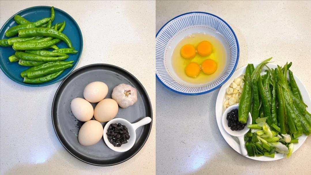 食材:樟树港辣椒(螺丝椒也可)、准备几个鸡蛋,蒜头、豆豉、蒜苗