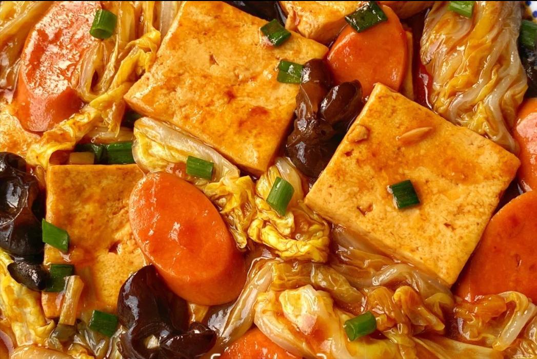 做好的火腿白菜豆腐煲,热气腾腾地端上桌,那场面,谁看了不心动啊!夹上一块煎得金黄的豆腐,吸满了汤汁,一口咬下去,那味道在嘴里爆开,香得不得了。火腿的咸香、白菜的清甜、木耳的脆爽,再加上浓郁的汤汁,每一口都让人满足。用这道菜来泡饭,那更是一绝,一碗饭下肚,吃得饱饱的,浑身都暖洋洋的。