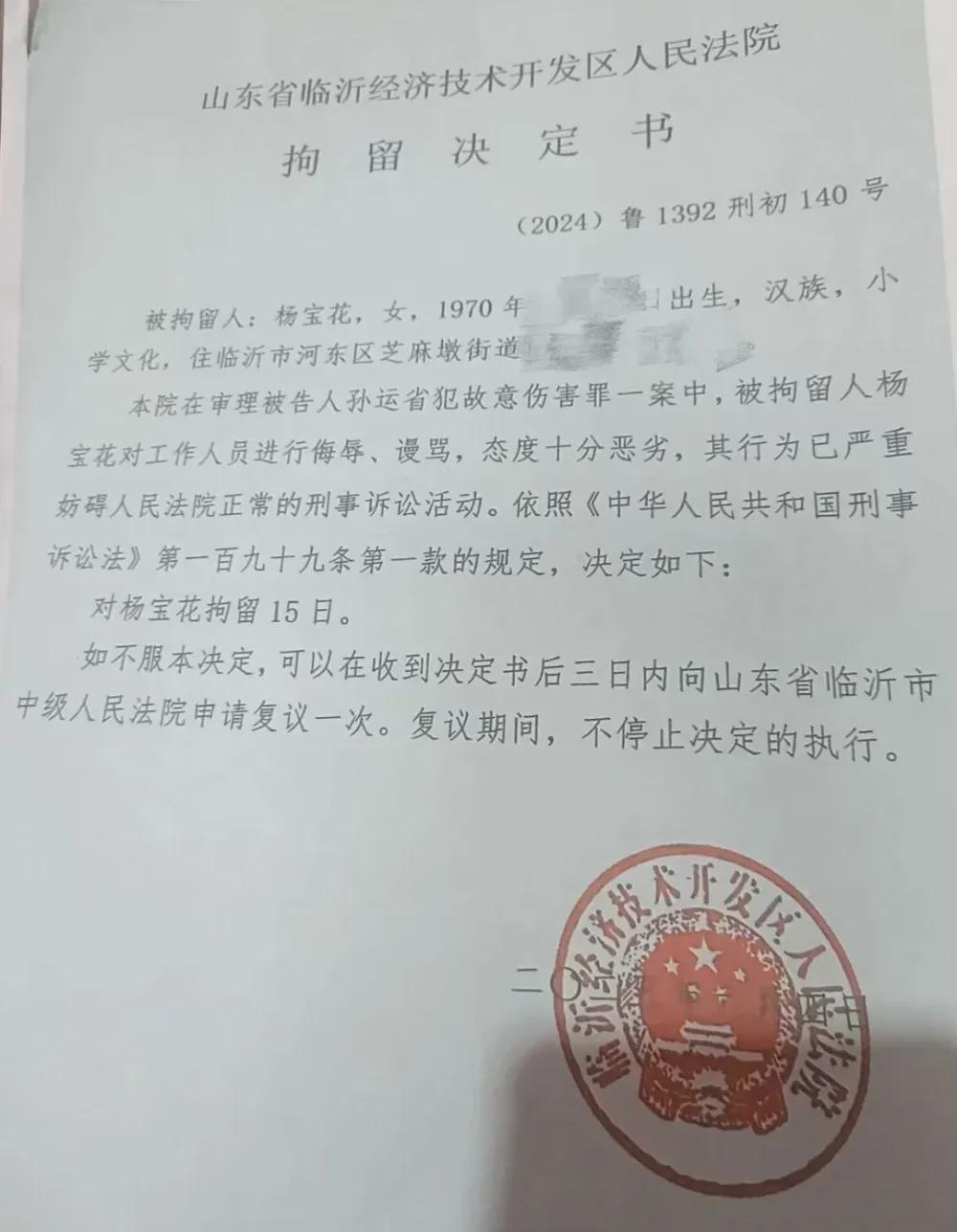 杨宝花气不过,对法官发了脾气:“为什么判得这么轻?如果是你的丈夫被别人打成这样,你也会这样判吗?”然而,她很快就得到了回馈:因“辱骂”法官,被拘留15日并罚款10万元,且限定在3日内提起复议。