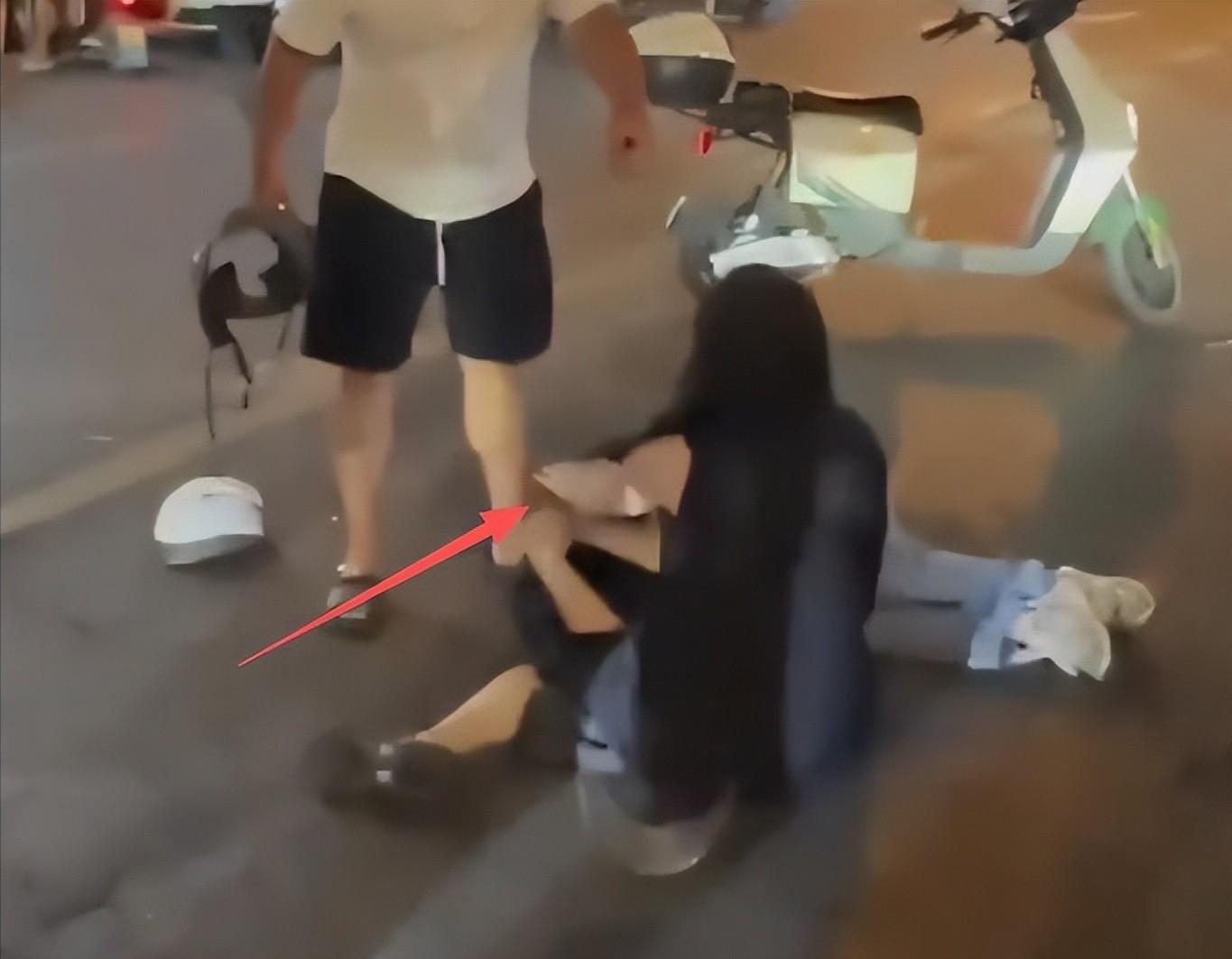 但妻子对第三者越是关心,丈夫心中的怒火也就越大。他直接一头盔甩到妻子头上,让她捂着头惨叫了起来。