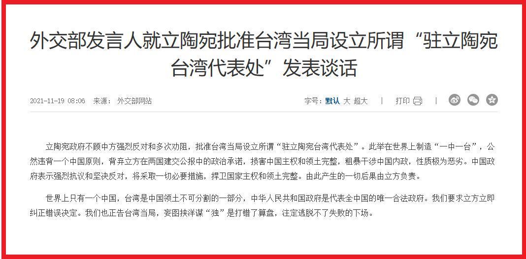 面对立陶宛的“施压”表态,中方在9月13日的外交部记者会上未予直接回应,而是强调立陶宛需在涉台问题上展现诚意。中国要求立陶宛首先纠正错误,停止对台当局的“事实承认”,否则中立关系难以恢复。