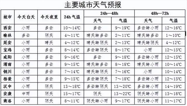 19日:全省多云转阴天,陕北南部局地有小雨或阵雨(0~3毫米),关中大部、陕南部分地方有小雨(0~10毫米),局地中雨(10~15毫米)。陕北北部有霜冻。