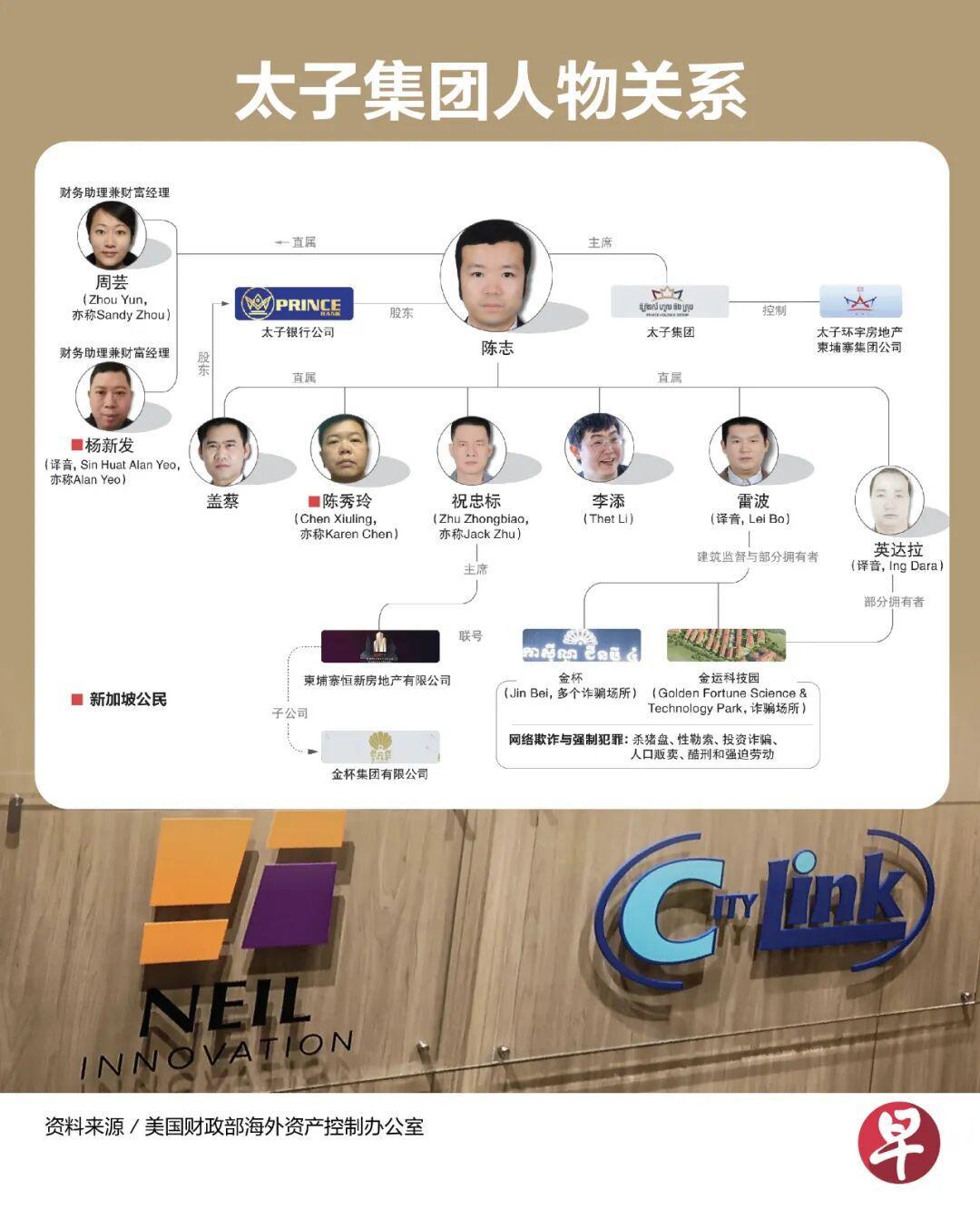 同时,美国财政部还梳理出了太子集团复杂的内部人员构成及非法活动的来龙去脉,并对数十家关联公司进行制裁。其成员来自中国重庆市、香港和台湾地区,以及新加坡、英国、柬埔寨、帕劳等国,多为华人。