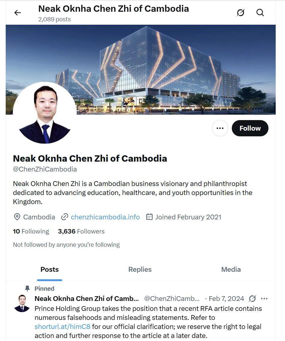在太子集团的官网上,陈志被介绍为“柬埔寨商界受人尊敬的企业家和著名慈善家”,并称“以其远见卓识和卓越领导力,将太子集团打造成为柬埔寨领先的商业集团……将太子集团的业务拓展至房地产开发、银行、金融、消费服务等多个领域。”
