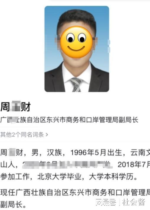 周某财不仅担任产投集团董事长一职,还是东兴上午和口岸管理局的二把手。他1996年出生,北京大学本科毕业,2018年参加工作。如此年轻便身居高位,原本前途无量的他,却因私生活混乱而陷入了舆论的漩涡。