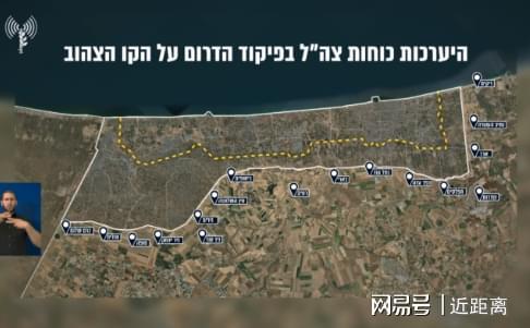 以色列军队已经撤到黄色虚线之外,如果他们再进入黄线内部,将被视为违反停火协议。因此,以军在黄线外围设立安全区,接纳因为害怕哈马斯而逃出来的加沙人。