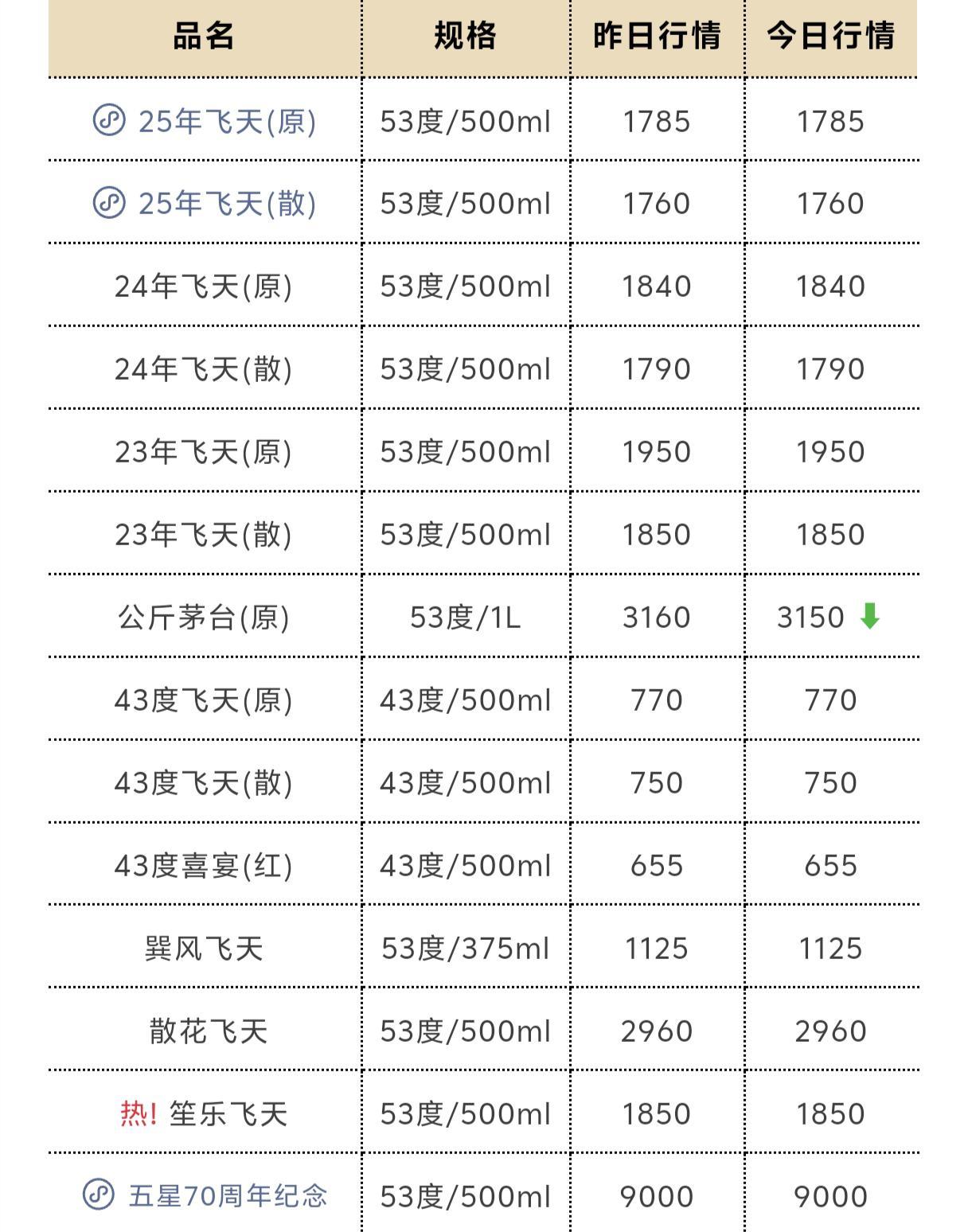 至于备受关注的43°飞天茅台,其价格则一如既往地稳定在750-800元之间。这种酒品的口味相对较淡,更适合自用,而送礼则更倾向于选择53°的飞天茅台。那么,大家对于接下来的飞天茅台价格走势有何看法呢?欢迎在评论区留言讨论。
