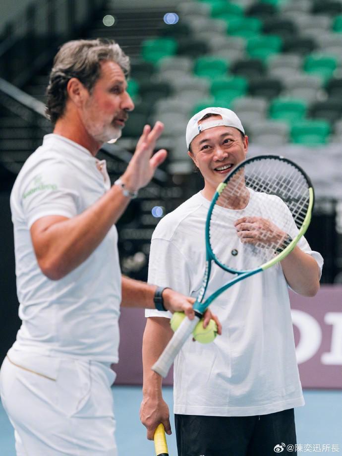 陈奕迅:能亲自与这两位先生见面,甚至有机会和他们一起练球,真是太荣幸了!!!玩得超级开心!!