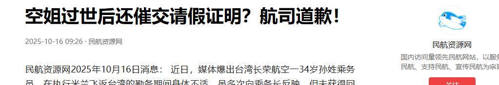 这条不合时宜的消息,瞬间点燃公众怒火。有人指责“这是往家属心上捅刀子”,也有人质疑“公司到底有没有把员工当人看”。直到15日晚,长荣航空才发布道歉声明,称“是同仁对业务不够熟悉所致”,但轻飘飘的解释无法抹去悲剧留下的伤痕。
