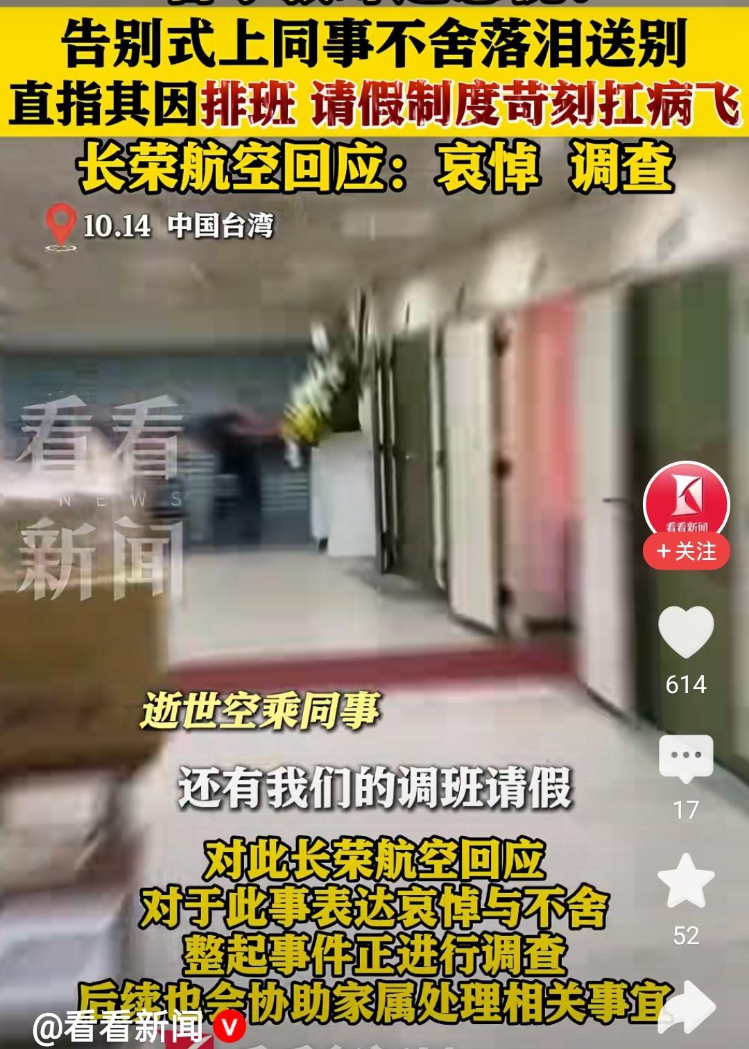 孙女士的离世,在空乘圈引发轩然大波。越来越多长荣航空员工站出来揭露:“不是不想休息,是根本不敢请假,也没法休息。”