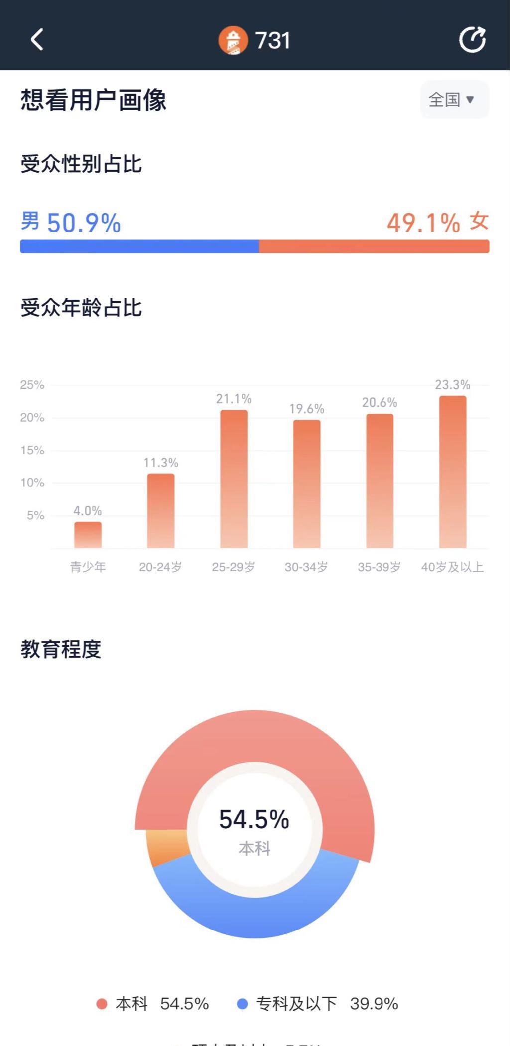 观众画像分析:青年观众为主流,性别比例均衡