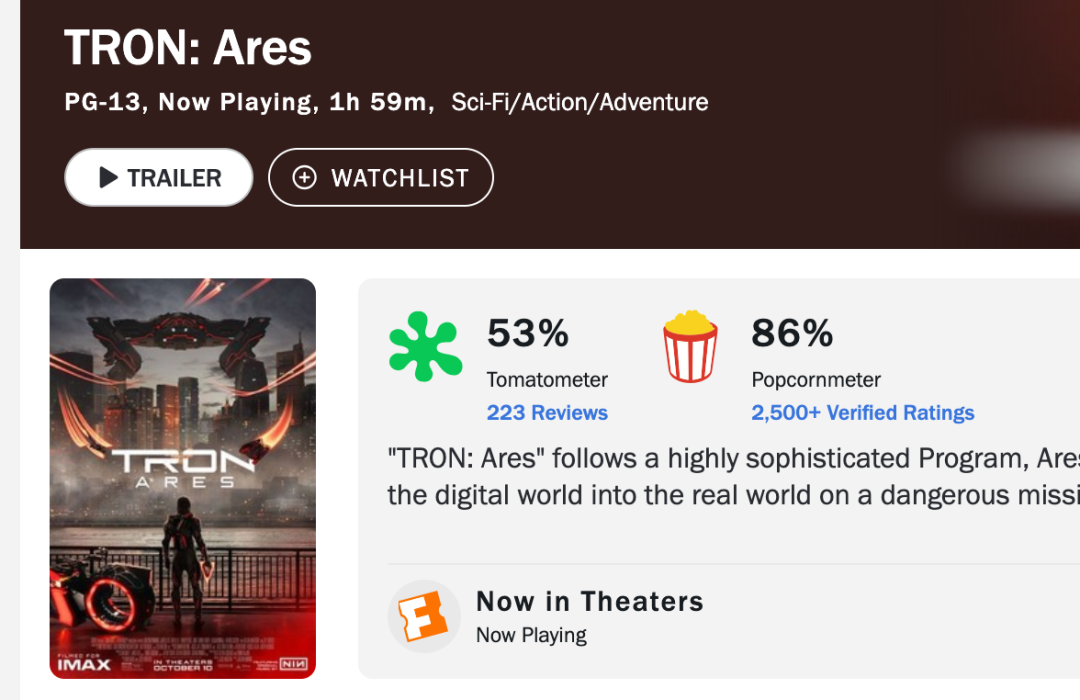 就比如,影片在烂番茄收到200多个媒体评价,新鲜度也仅有53%,尚且未达到6成的好评。