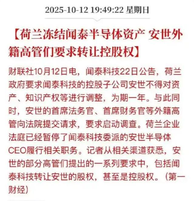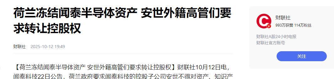 荷兰政府为安世半导体任命的“独立、非中国籍”外籍管理层近日公开声明,正与中国有关部门协商“出口管控限制”的豁免事宜。这一举动引发广泛争议——荷兰刚通过法律手段从中国闻泰科技手中夺取安世半导体控制权,转头却要求中国放宽限制,其政策逻辑的矛盾性暴露无遗。