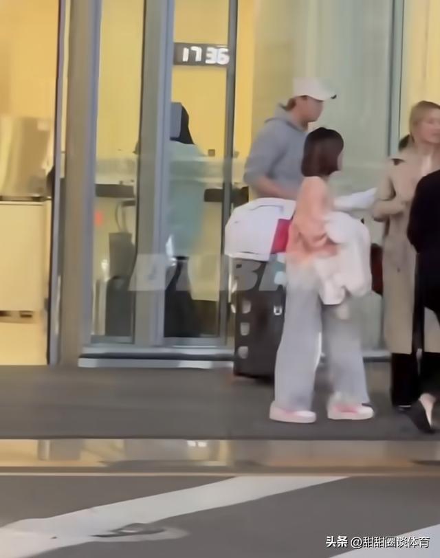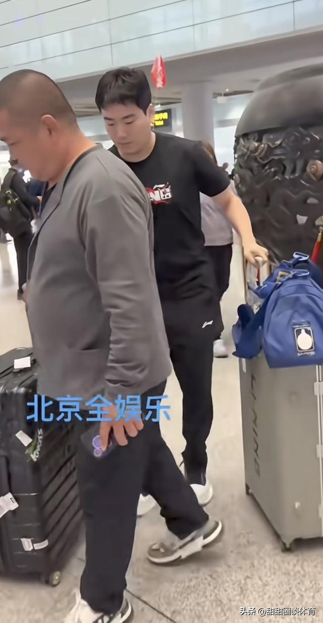 据悉,梁靖崑昨天抵达北京,当他拉着两个行李箱出现在机场大厅时,他的老丈人早已等候多时。老丈人赶忙迎上去,一把接过梁靖崑的一个大箱子,两人并肩而行,一同离开机场,画面十分温馨。