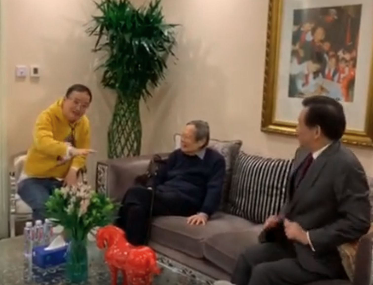 这位黄衣男子询问杨振宁身体情况如何时,杨振宁表示最近忽然头有点晕,还表示第二天要去301医院看看。他称,之前去医院时,医生说是他脖子供血不足,现在已经在吃银杏的叶子来缓解。医生还让他多住几天,把这个情况解决好。