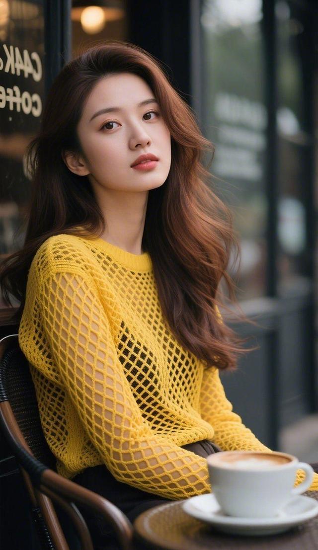这位美女的黄色毛衣穿搭展现了不同的风格。无论是休闲风还是优雅风,黄色毛衣都能轻松驾驭。