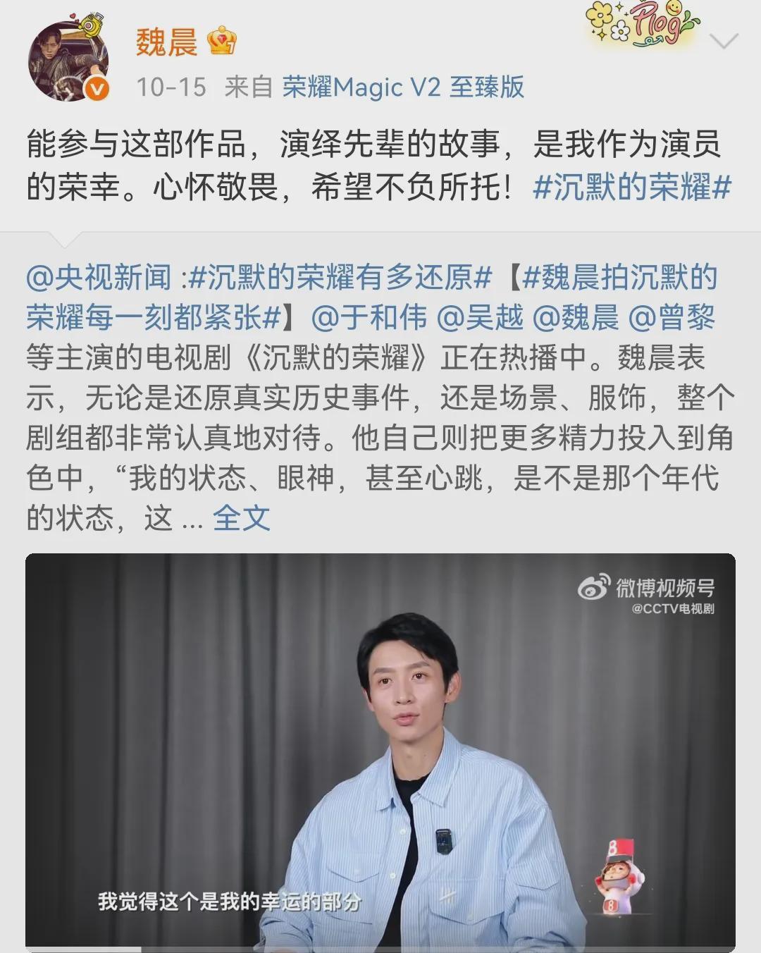 饰演聂曦的演员魏晨也发文表示,自己能参与这部作品,演绎先辈的故事,是自己作为演员的荣幸。魏晨是歌手出身,没想到他把聂曦这个角色塑造得非常不错。之前看他主演的悬疑剧《消失的孩子》才注意到他,看来演员这条路,他是走通了、走顺了。只不过听他说话时那超低分贝的嗓音,令人听着有点难受。