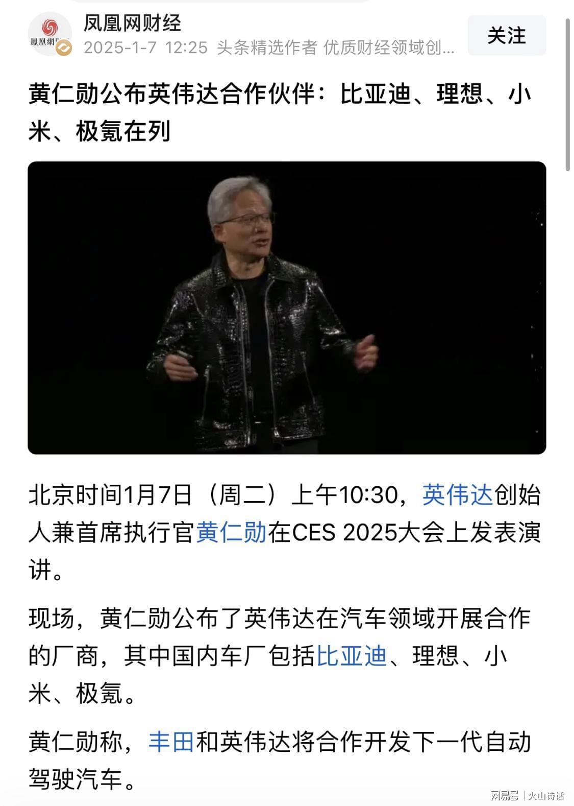 英伟达的退出影响范围远超预期。在CES 2025大会上,黄仁勋公布的合作名单显示,比亚迪、理想、小米、极氪四家车企均采用其DRIVE平台。其中: