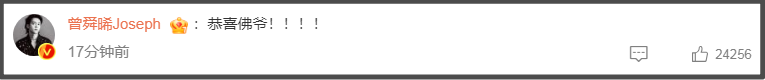 曾舜晞则直接来了一句“恭喜佛爷”,一下子把人拉回了两人合作《九门》的时候。当年陈伟霆还是流量正夯的小鲜肉,转眼就当爹了,让人不禁感慨时间过得可真快!