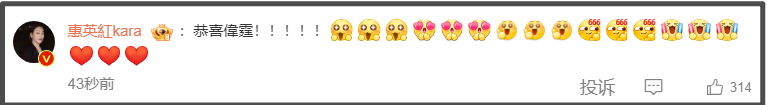惠英红则简单明了地送上“恭喜伟霆”,还搭配了无数开心欢呼的表情包,能感受到她的热情。