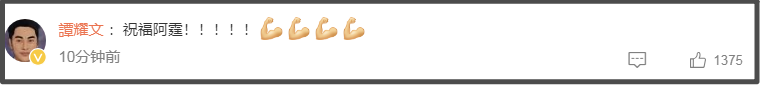 香港艺人谭耀文留言“祝福阿霆”,还搭配了许多给力的表情包。