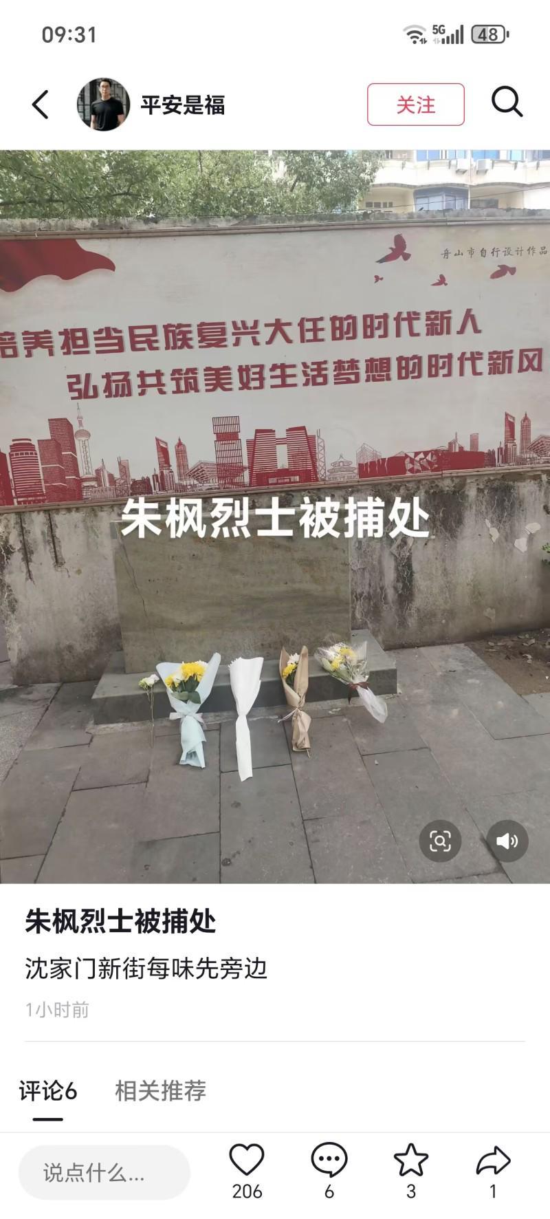 据竞舟新闻报道,浙江舟山沈家门有一处革命遗址,正是《沉默的荣耀》原型人物朱枫烈士被捕地。最近这几天,不断有市民赶到送鲜花,向英雄致敬。