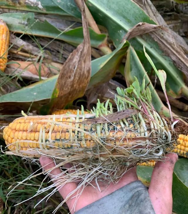 有的玉米籽粒已发芽成幼苗(图/受访者提供)