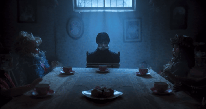 时隔三年,《星期三》第二季直接卷上了更高层次的黑暗。开篇就是惊悚片级别的视觉冲击:她被绑在地下室,四周是人皮娃娃、铁链摩擦声,还有那种诡异的波顿式光影,让人不寒而栗。