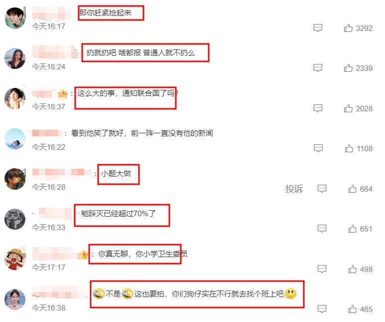 甚至有网友调侃狗仔看不下去,让他赶紧捡起来。