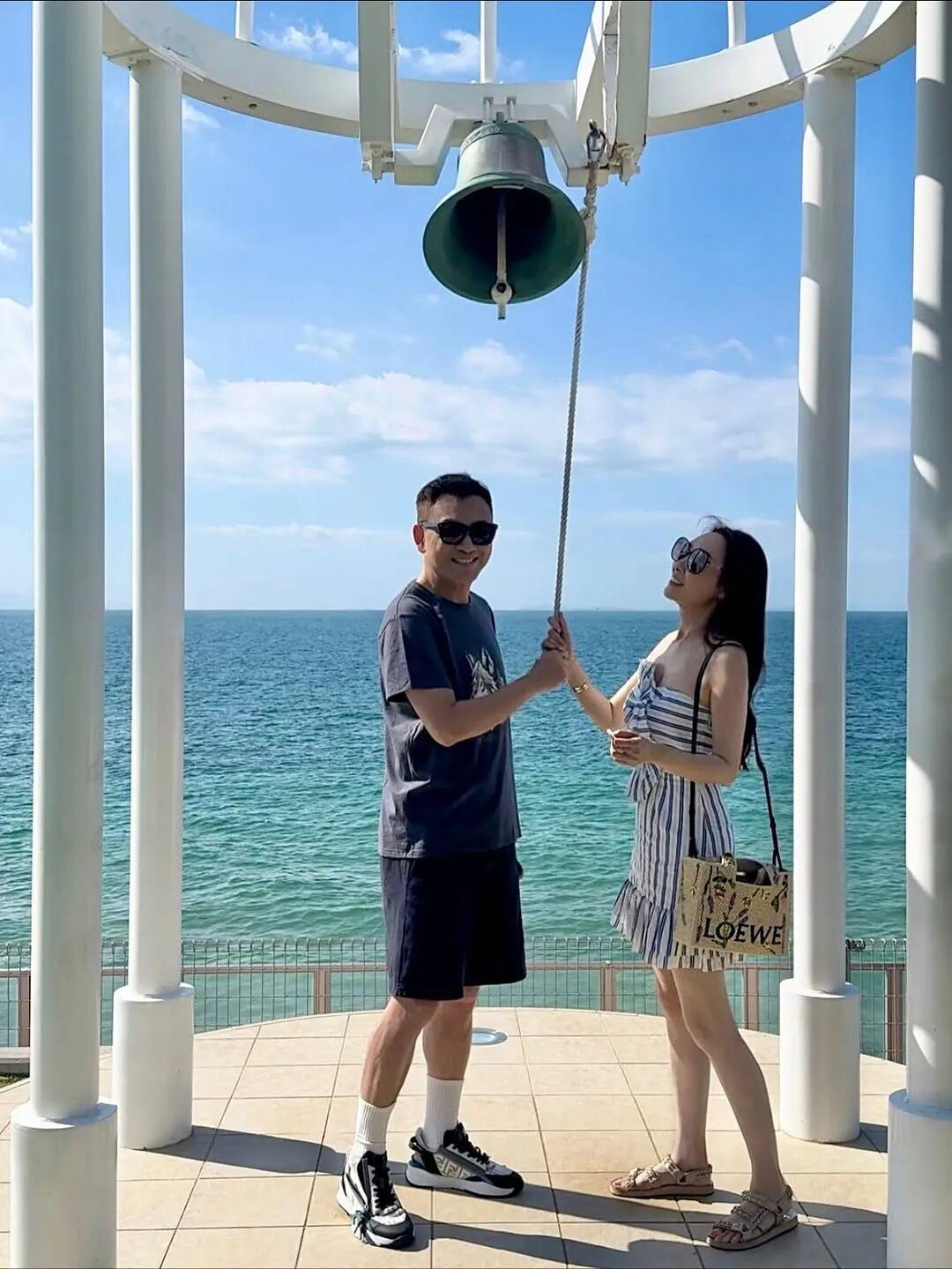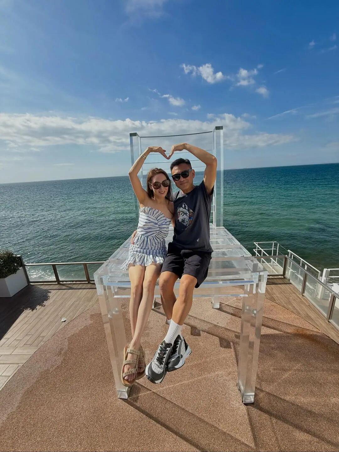 在晒出的照片中,林文龙与郭可盈在蓝天白云和无敌海景的背景下,合体摆出爱心姿势,大秀恩爱,让人感受到他们家庭的幸福与和谐。