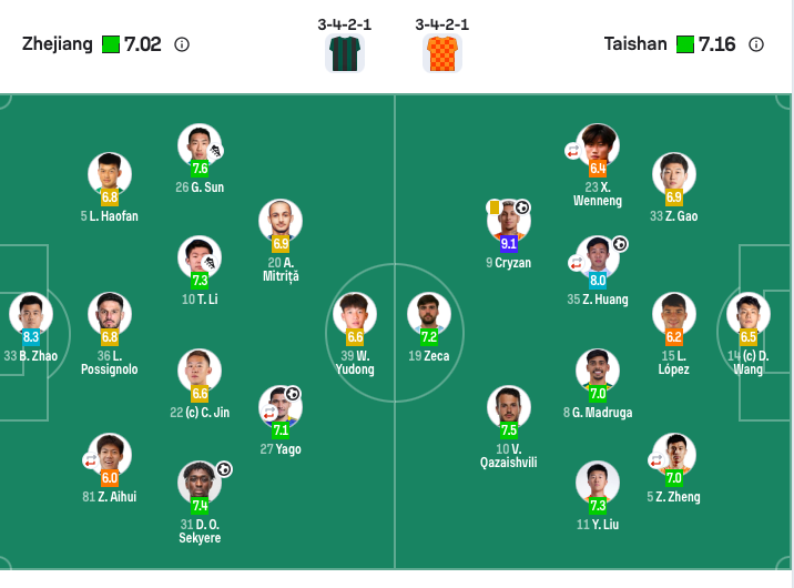 中场:8-马德鲁加(F)、9-克雷桑(F)、35-黄政宇(74’22-李源一);