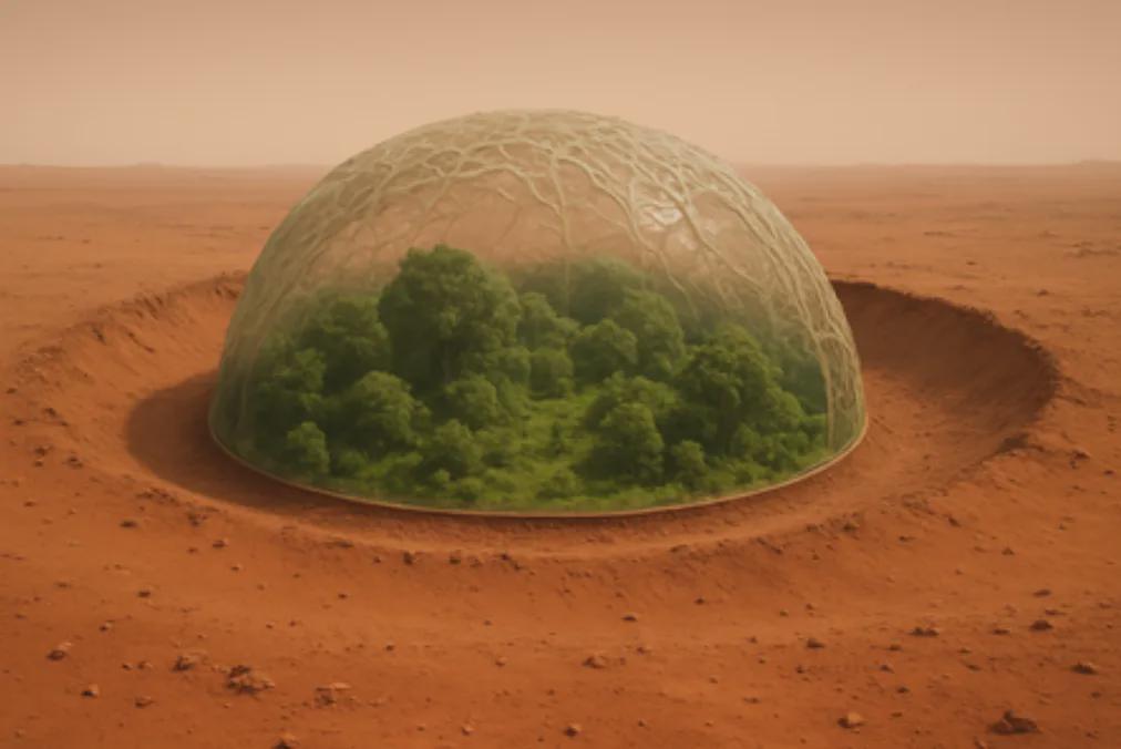 研究提出了一个巧妙的‘过渡方案’:穹顶栖息地。在一个百米高的巨大穹顶内,植物通过光合作用或电解水,仅需两到三年就能产生一个可供人类不穿宇航服自由活动的小环境。人类的火星生活将从一个个绿色的‘气泡’开始,最终连接成片,直到整个星球的天空都变得可以呼吸。