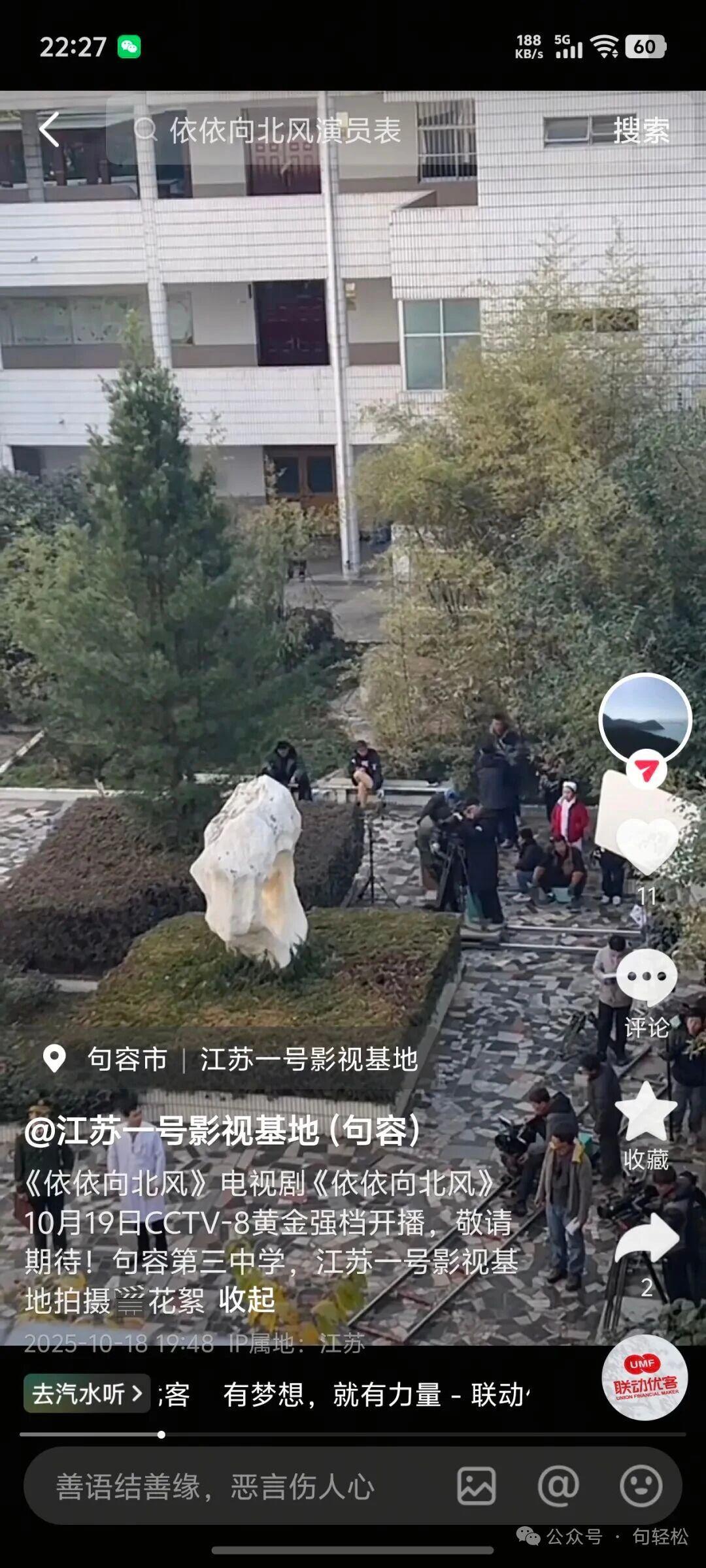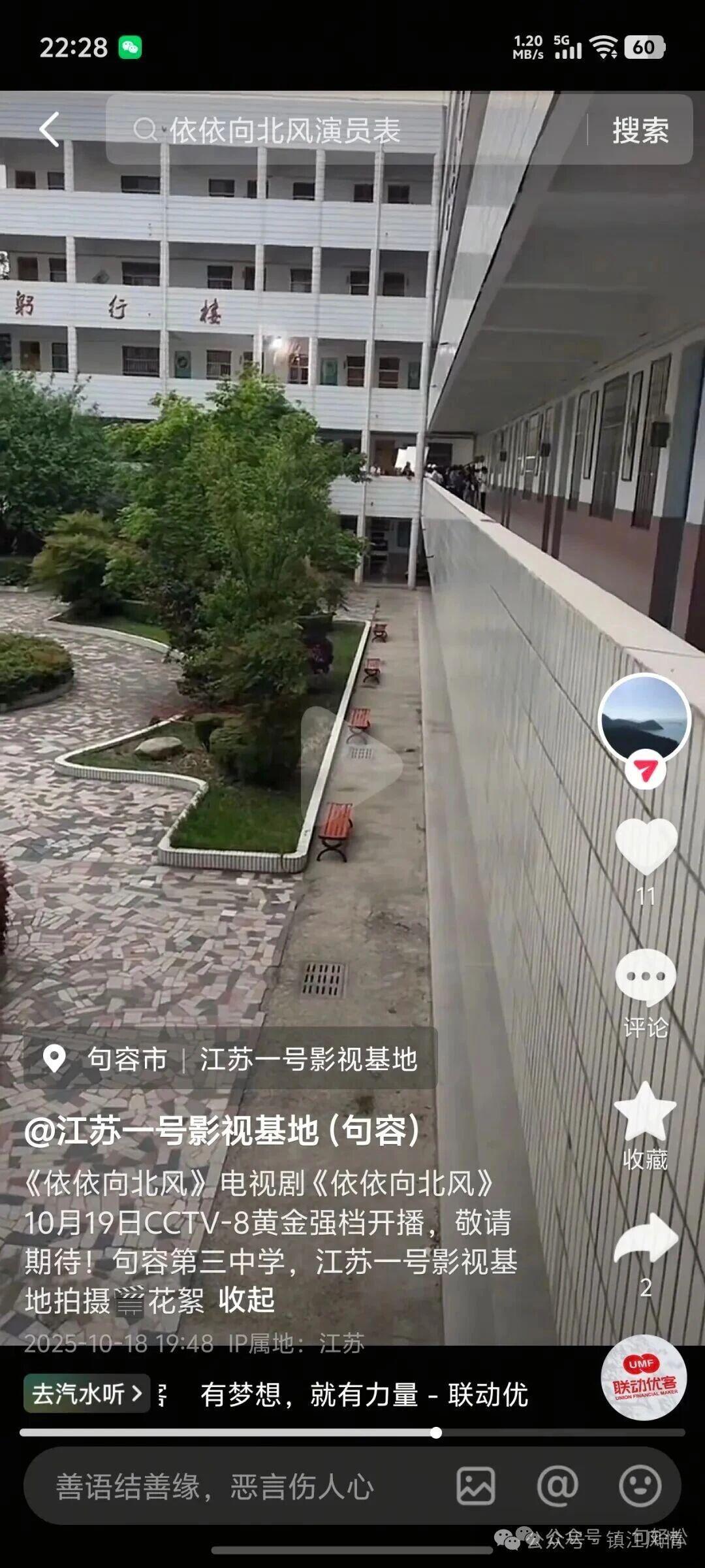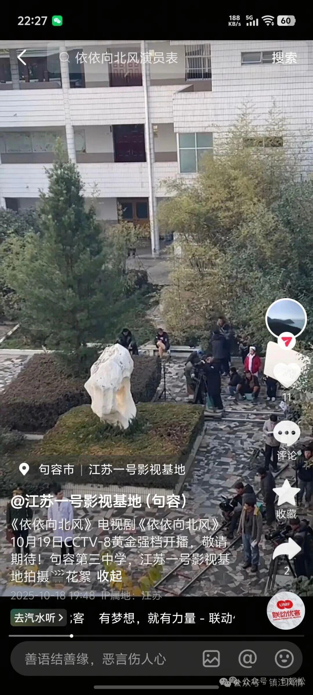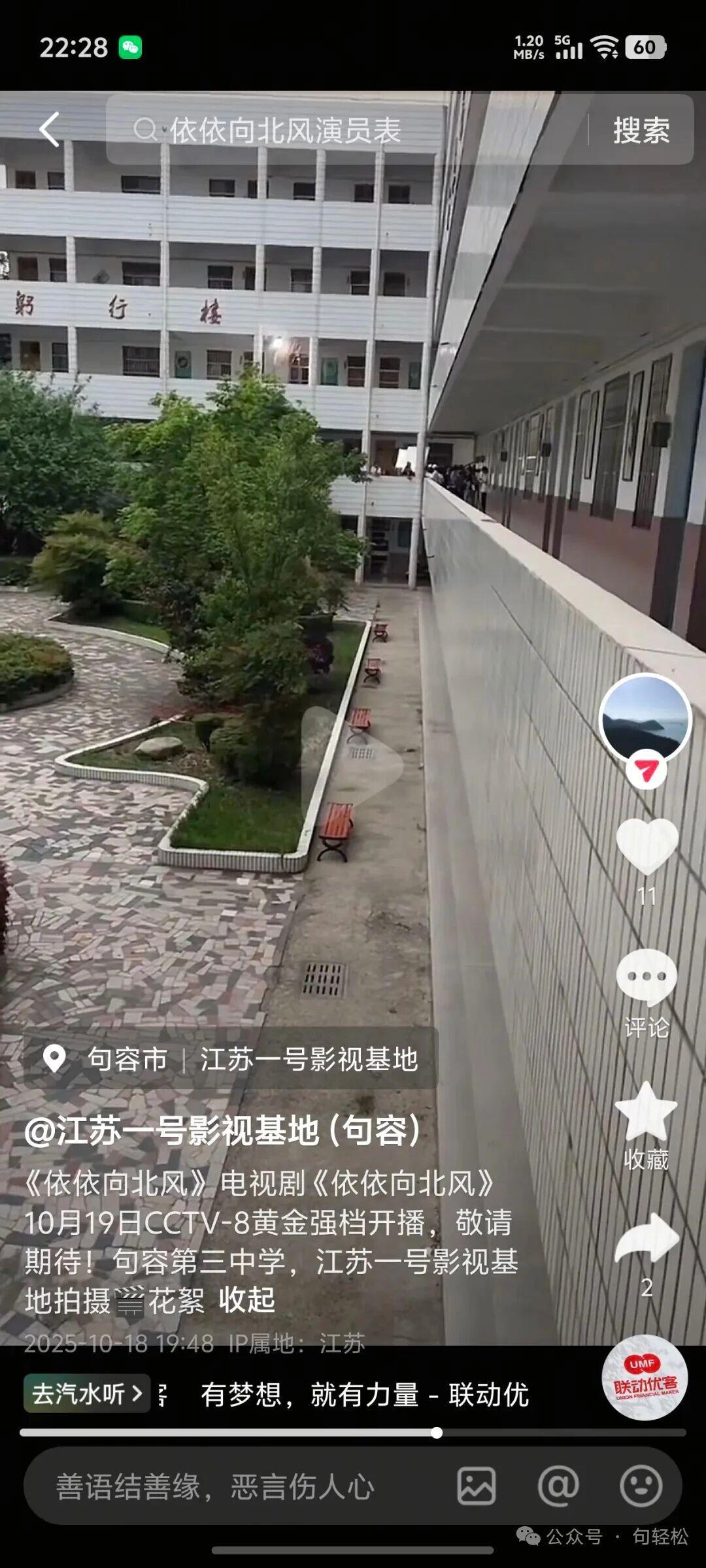 据悉,《依依向北风》在镇江句容的江苏一号影视基地完成了部分重要场景的拍摄。该影视基地以其完善的设施和优美的环境,为剧组提供了理想的创作空间。而更令人惊喜的是,句容市第三中学也成为了这部热播剧的校园取景地,为剧情增添了浓厚的青春气息。