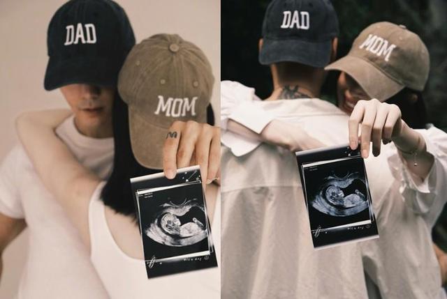 两人在照片中晒出了B超照、孕肚照,以及宝宝的照片。
