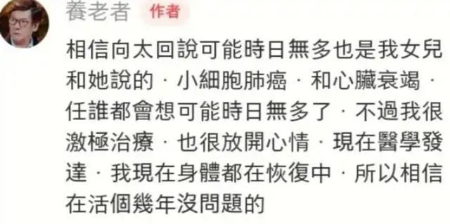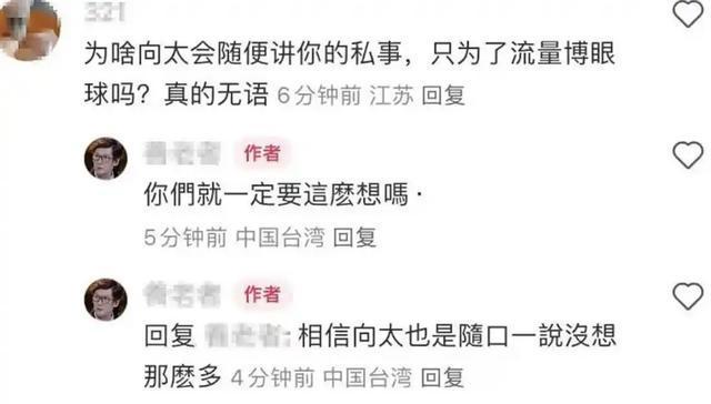 评论区不少人留言,说向太连跟自己亲家公的料都爆,还说人家时日无多,实在是太缺德了。