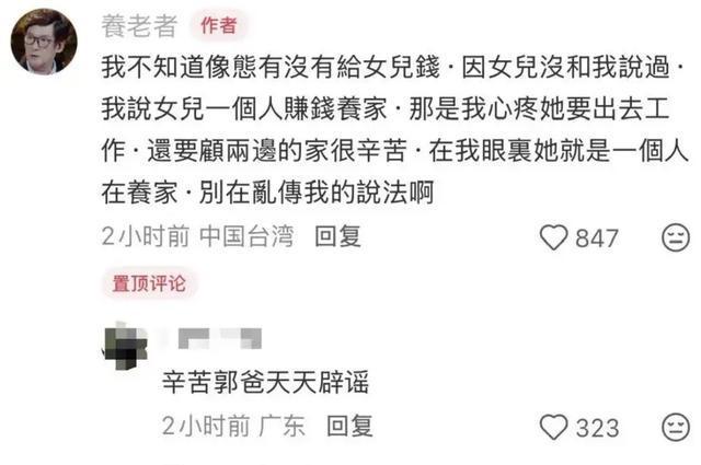 结果三天后,郭爸直接亲自上阵辟谣,啪啪打脸向太。