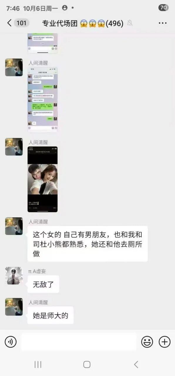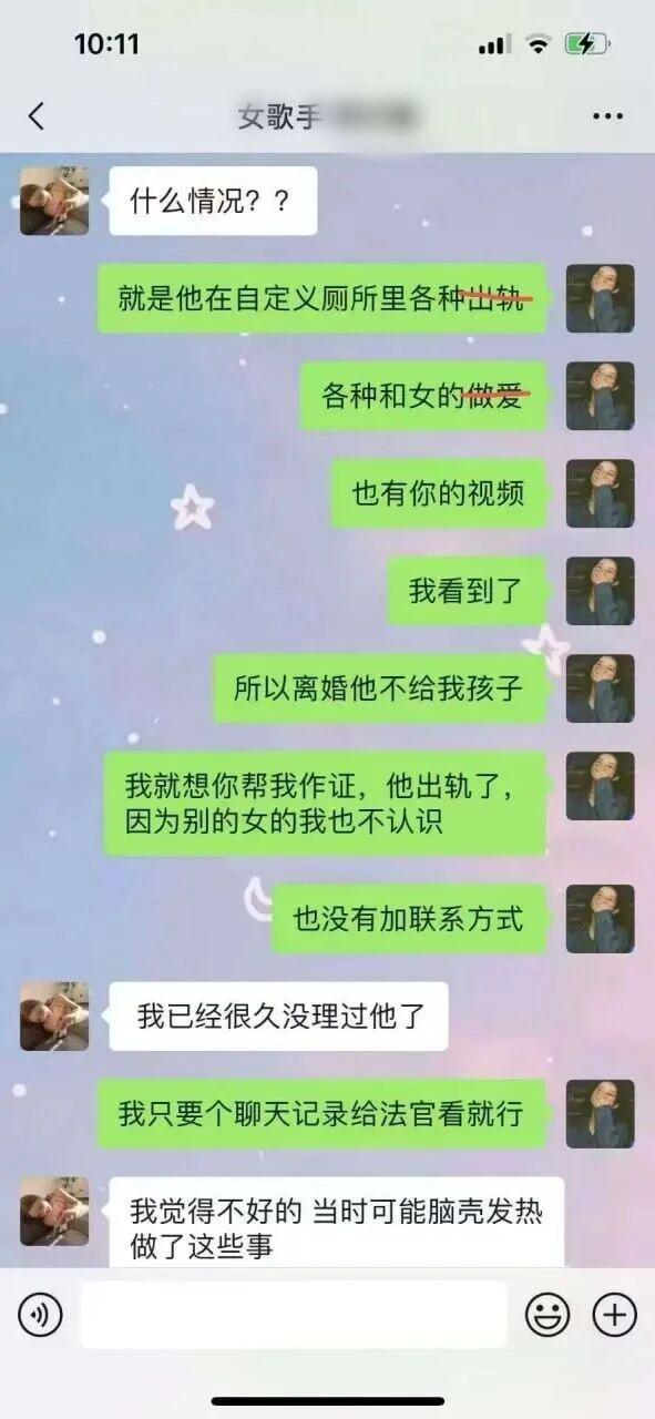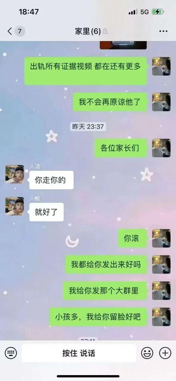 面对丈夫的种种恶行,妻子终于忍无可忍。她先是在一个拥有496人的“专业代场团”大群里公开了丈夫的丑闻,让全行业的酒吧、歌手都避雷这名“人渣”。随后,她又私戳被丈夫睡过的女歌手,索要聊天记录作为证据,只为在离婚时争取儿子的抚养权。甚至,她还在家里群里甩出了出轨视频,并放话“不会原谅”,与丈夫彻底撕破脸。