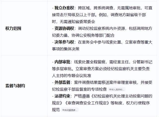 一个副主任,掌握的权力,我们可以参考我这个表格,独立办案权、资源协调权、决策参与权,这三大权力能大到什么程度,你就去想一下就知道了,就拿独立办案权来说,钟小艾一个电话打过去,跨区域、跨系统调查,无需属地审批,可直接带走厅局级及以上干部,更别提资源协调权了,调动纪检监察系统内外资源,包括调用地方纪委力量、协调公安税务等部门配合。