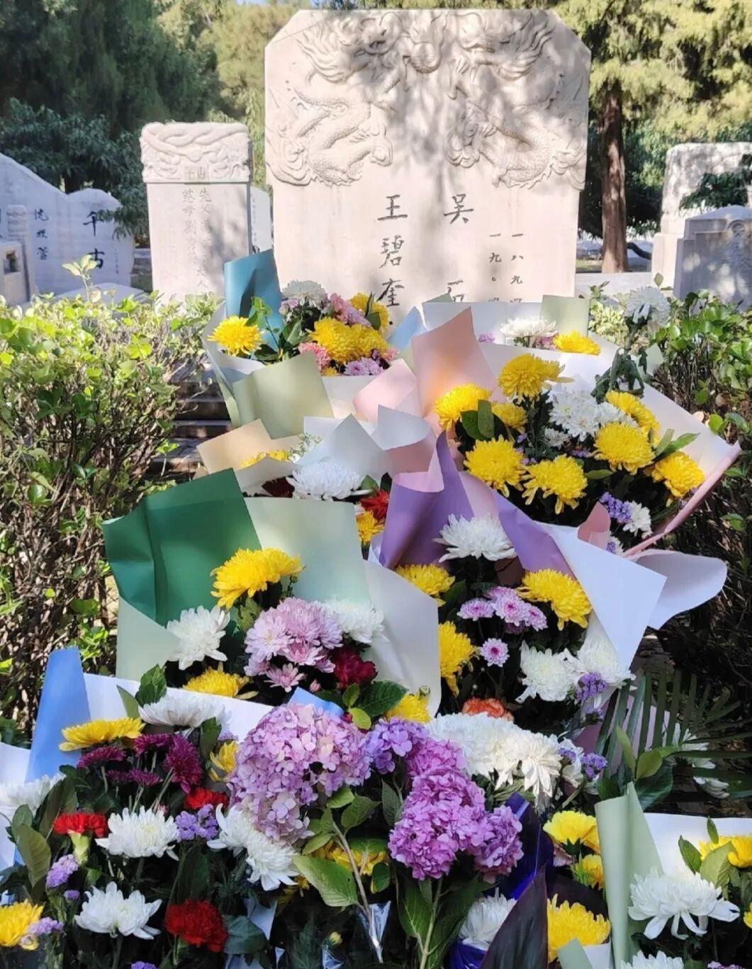 这几天北京福田公墓火了,吴石墓前摆了5米长的鲜花墙。
