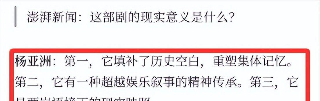 就像导演杨亚洲在访谈中说的,这部剧的现实意义就是填补了历史空白。