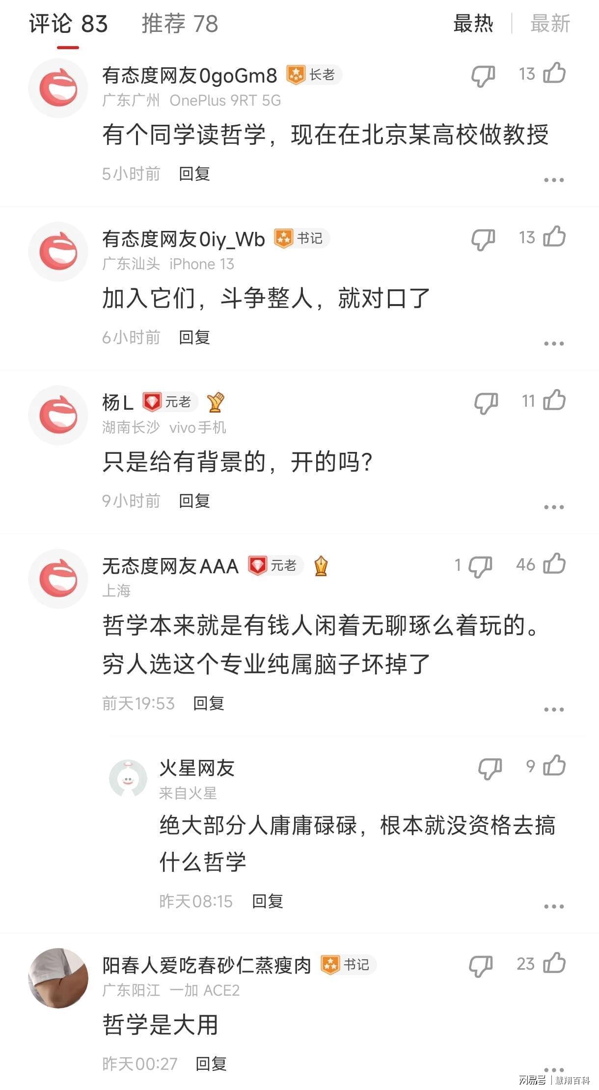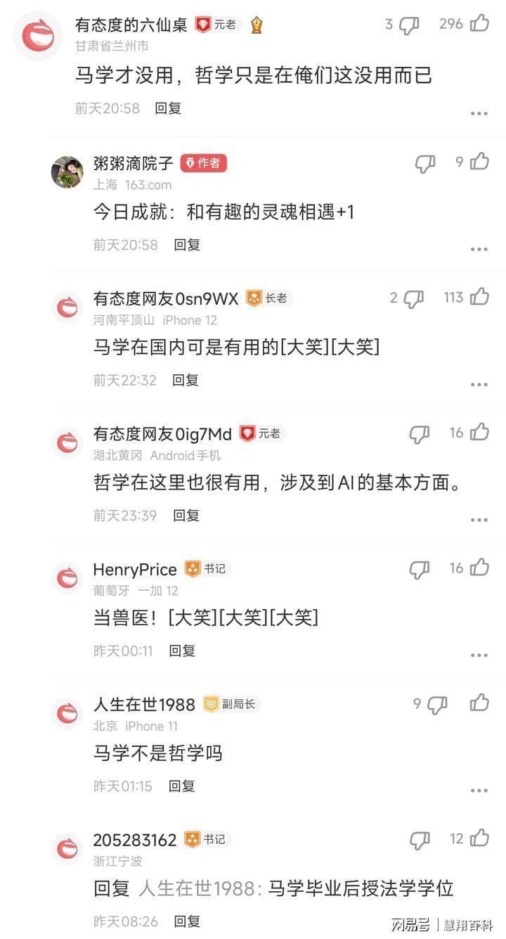 有甘肃网友指出,马学(马克思主义哲学)可能在他们那里没用,但哲学在其他地方或许还有用武之地。然而,河南网友却不认同,他认为马学在国内其实很有用。