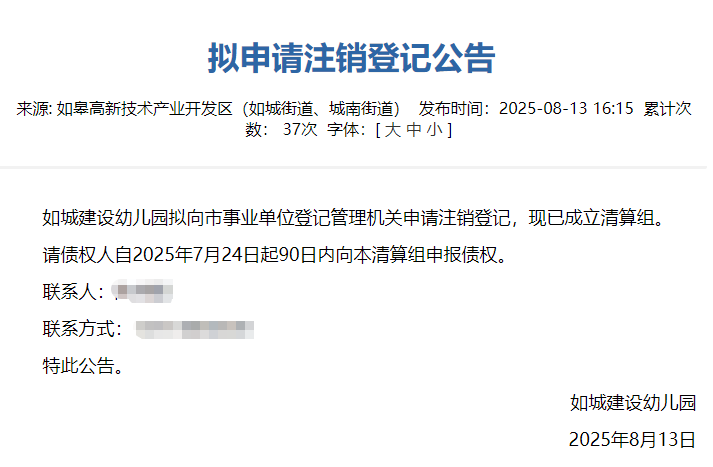 今年8月,如皋高新区如城建设幼儿园也发布了注销公告,进一步加剧了家长对学前教育资源稳定性的担忧。该幼儿园的停办,使得周边家庭不得不重新考虑孩子的入园问题。