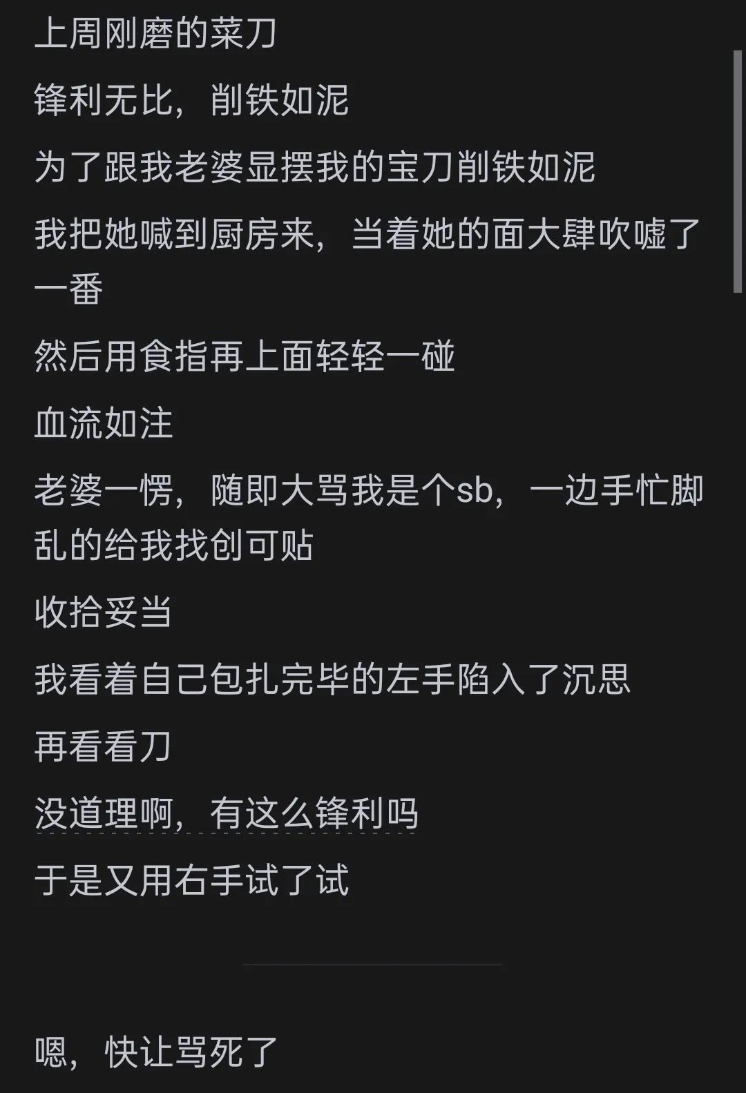 除了与电相关的惊险,日常生活中也有不少因手贱而带来的“惊喜”。有网友分享道:“把火龙果放手上切,用的陶瓷刀,从此理解了为什么电视剧里很多把碗摔碎了拿碎片自杀或者威胁对方的,那是真锋利。”看来,手贱不仅可能带来疼痛,还可能让人对日常用品产生新的认识。